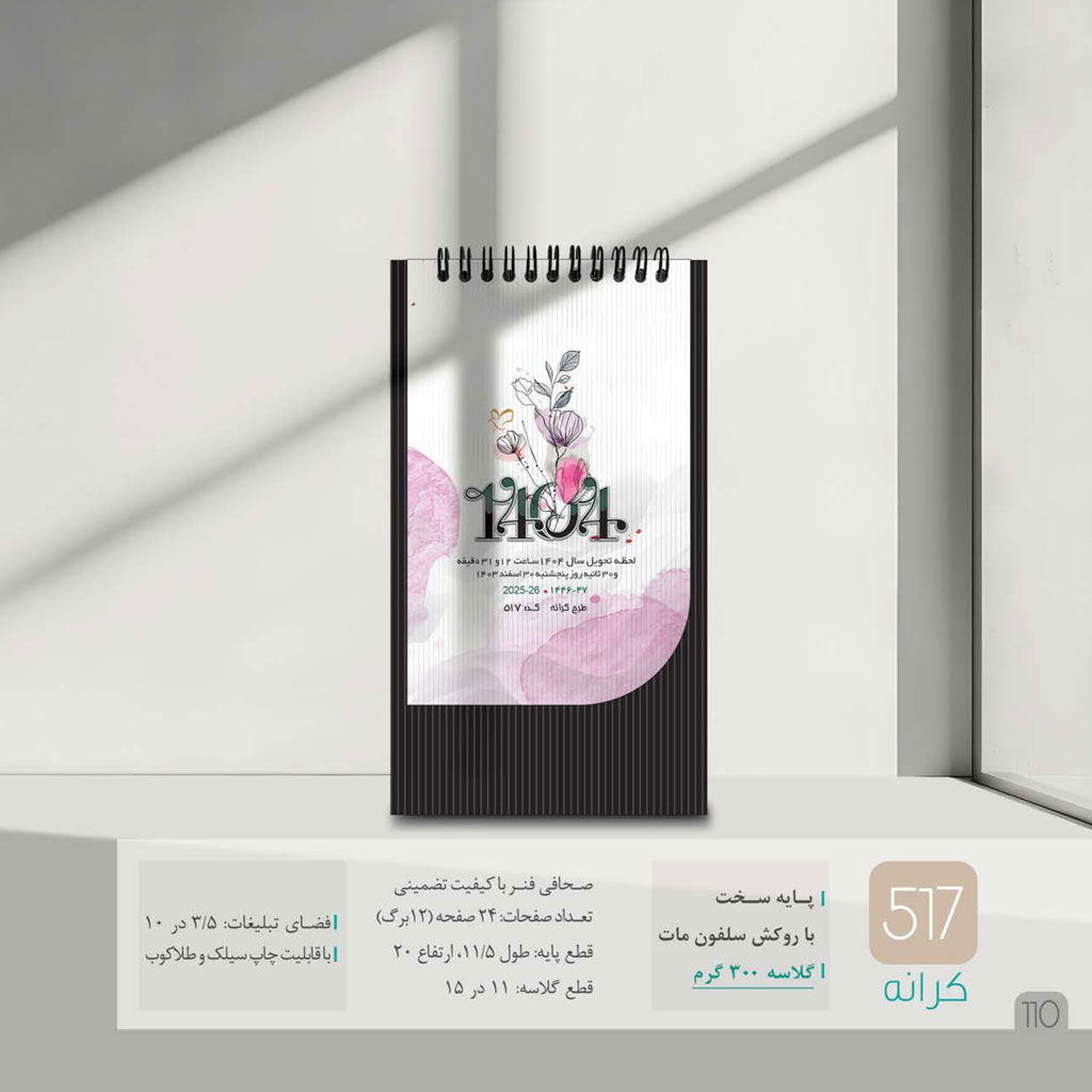 تقویم رومیزی 1404 با پایه سخت و پوشش سلفون مات (مدل کرانه)
