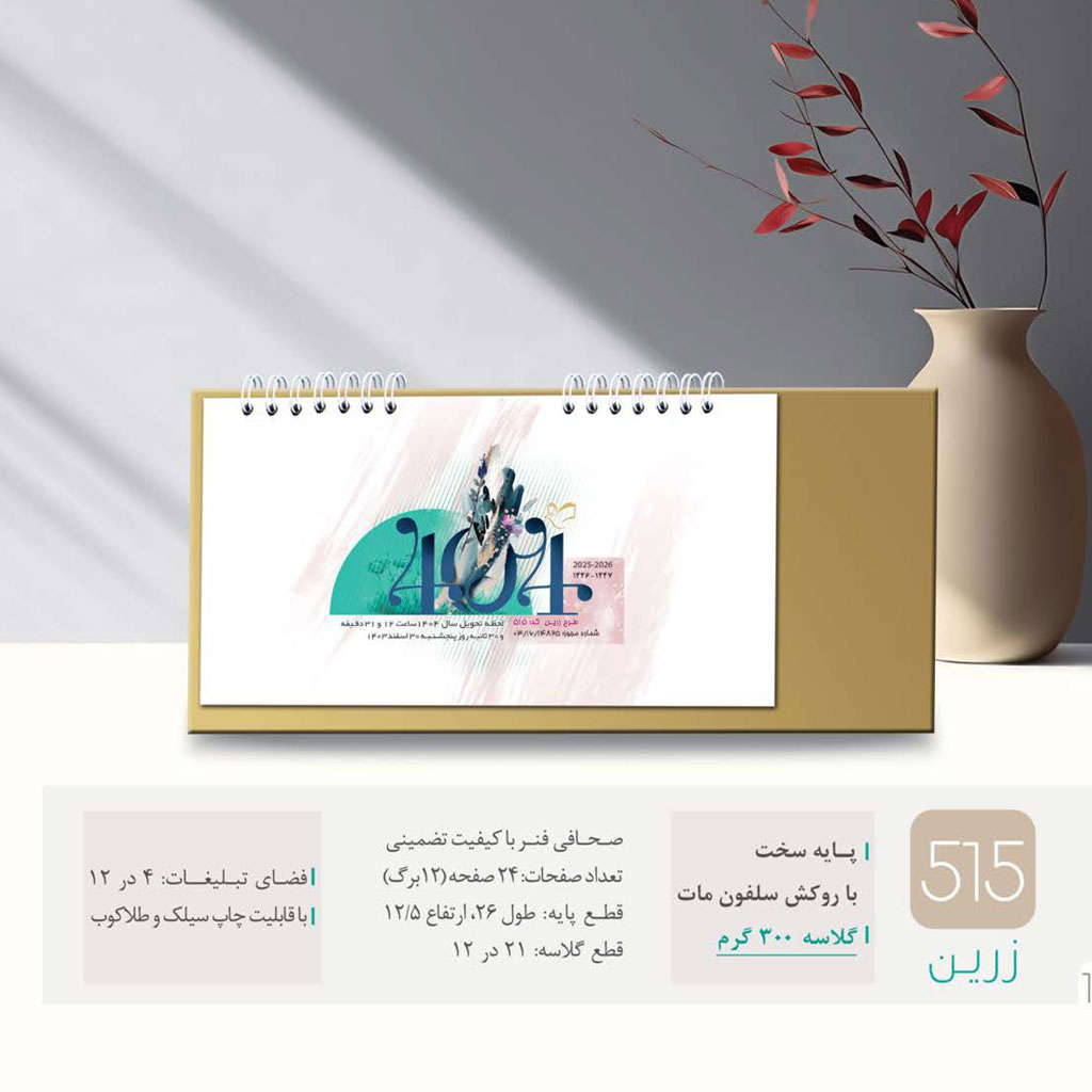 تقویم رومیزی 1404 با پایه سخت و پوشش سلفون مات (مدل زرین)